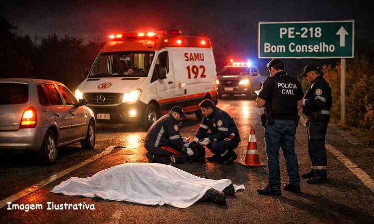 Um homem morreu após ser atropelado na noite deste sábado (14), na rodovia PE-218, no município de Bom Conselho, no Agreste de Pernambuco. A vítima foi identificada como Geilson Francisco da Silva, de 53 anos. De acordo com informações, ele havia parado o veículo e desembarcado para verificar algo no carro quando foi atingido por um automóvel ainda não identificado. O Serviço de Atendimento Móvel de Urgência (SAMU) foi acionado, mas ao chegar ao local LER NOTÍCIA