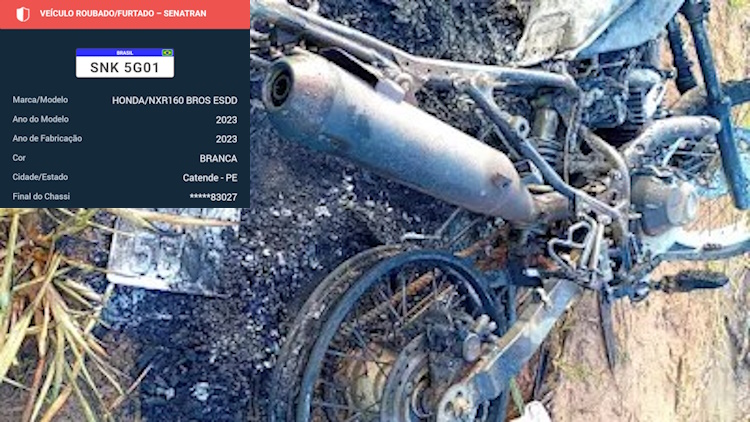 Veículo tinha registro de roubo desde fevereiro e foi localizado às margens da PE-96 Uma motocicleta roubada foi encontrada completamente carbonizada na manhã de sexta-feira, 27/3, no Engenho Canoa Rachada, na zona rural de Água Preta, na Mata Sul de Pernambuco. De acordo com a Polícia Militar, o efetivo foi acionado por populares que informaram sobre a presença de um veículo abandonado na localidade, às margens da PE-96. No local, os policiais constataram que se LER NOTÍCIA