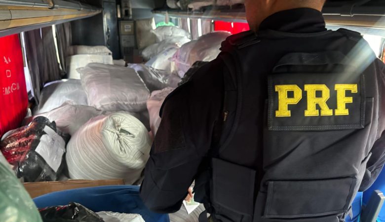 Veículo estava carregado com roupas e transportava quatro passageiros sem condições de segurança Um ônibus que estava carregado com mercadorias e transportava passageiros no mesmo compartimento foi flagrado, nesta sexta-feira (27), pela Polícia Rodoviária Federal (PRF), na BR 104, em Caruaru, no Agreste pernambucano. O veículo havia saído de Santa Cruz do Capibaribe e tinha como destino a cidade de Esplanada, na Bahia. Durante a abordagem ao ônibus, a equipe constatou que quatro passageiros eram LER NOTÍCIA