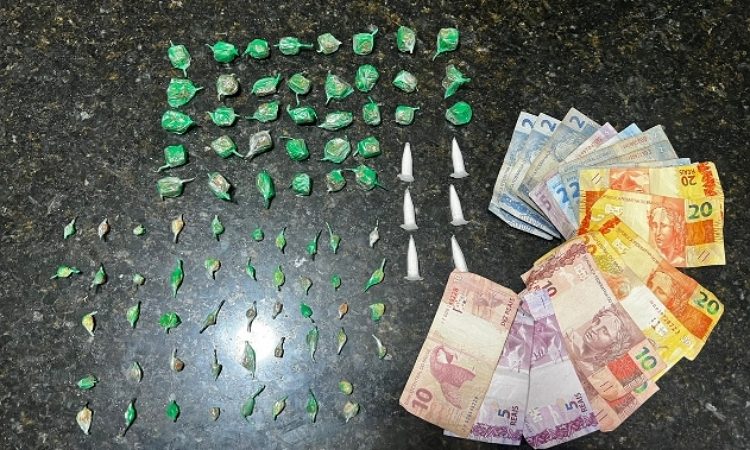 Na manhã desta quarta-feira (15), policiais militares do 22º BPM, em ação conjunta com a Polícia Civil, realizaram a abordagem de um indivíduo suspeito de envolvimento com o tráfico de entorpecentes. Durante a revista, foram encontradas com o suspeito 47 pedras de crack, 36 porções de maconha, conhecidas como “big big”, além de 6 pinos de cocaína. Também foi apreendida a quantia de R$ 141,00, valor que, segundo a polícia, é oriundo da comercialização das LER NOTÍCIA