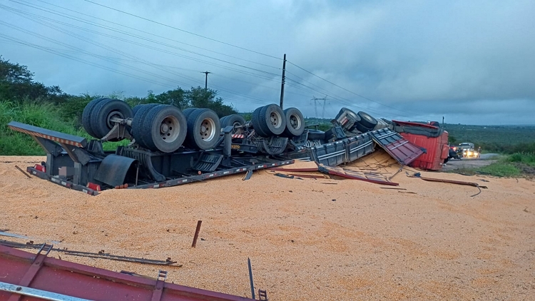 Um acidente foi registrado por volta das 3h50 da madrugada desta quinta-feira (16), no Km 83 da BR-423, no município de Garanhuns, no Agreste pernambucano. De acordo com a Polícia Rodoviária Federal (PRF), o motorista de uma carreta que transportava milho perdeu o controle do veículo, que acabou tombando às margens da rodovia. O condutor ficou ferido e foi socorrido por uma equipe do Serviço de Atendimento Móvel de Urgência (SAMU), sendo encaminhado ao Hospital LER NOTÍCIA