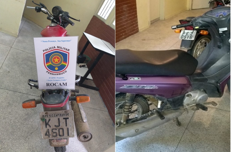 Duas motos roubadas foram recuperadas pela Polícia Militar na manhã deste domingo (21), na cidade de Pesqueira, no Agreste de Pernambuco.