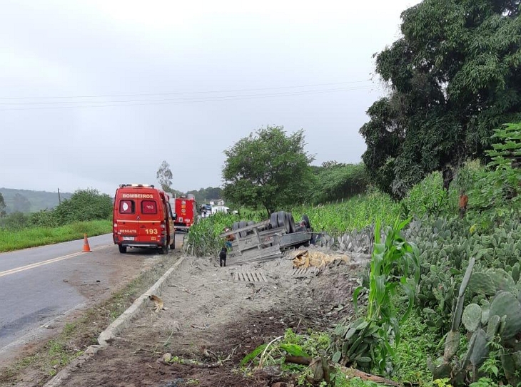 Luciano Cordeiro de Santana, de 36 anos, estava conduzindo um caminhão Mercedes Benz, cor cinza, placas NQC-2107, quando perdeu o controle, o caminhão saiu da pista e tombou.
