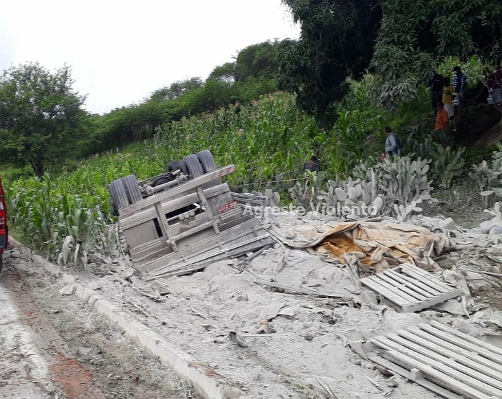 CAMINHÃO CARREGADO DE CIMENTO TOMBA E MATA MOTORISTA EM GARANHUNS