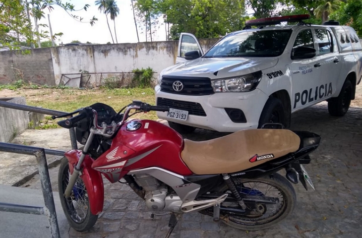 A moto Honda CG-160, cor vermelha, placa OYZ-9615, estava nas proximidades da CAGEP, a mesma foi levada para delegacia de Polícia Civil, que adotará as medidas cabíveis.