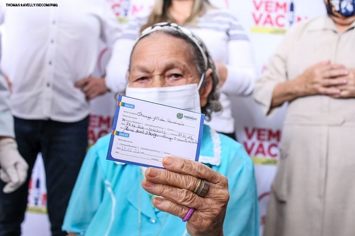 Coube a idosa Thereza Maria da Conceição, de 104 anos, residente do Abrigo São Vicente de Paulo, receber a primeira dose do imunizante. A técnica em enfermagem, Maria Sueli da Silva, de 52 anos, que atua na saúde há 38 anos, foi a primeira aplicadora e também a primeira profissional de saúde do município a ser imunizada. O momento foi vivenciado na tarde de hoje, no do Abrigo São Vicente de Paulo, que foi escolhido pela Prefeitura como ponto de partida da vacinação.