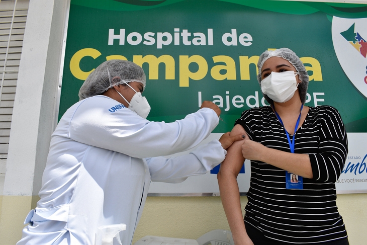 O prefeito de Lajedo, Adelmo Duarte esteve presente no momento em que a profissional técnica de enfermagem Leonice Clementino da Silva que atua na Casa de Parto de Lajedo recebeu a 1ª dose. A secretária de saúde, Rogéria Vieira esclareceu que são 161 pessoas a serem imunizadas em duas doses cada pessoa. Frisou ainda que os demais profissionais também receberão a vacina assim que forem liberadas mais doses.