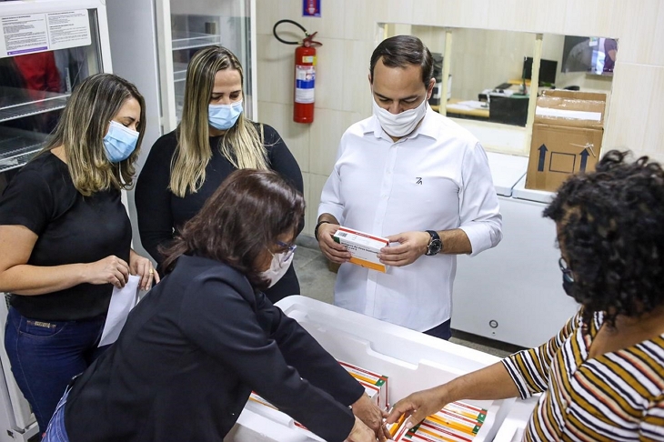 Ontem o prefeito Sivaldo Albino recebeu as doses disponibilizadas para Garanhuns na sede da V Gerência Regional de Saúde (Geres), que serão armazenadas na sala de vacina da Unidade de Tratamento Covid-19 (UTC). O município está preparado para garantir a logística de vacinação. Atualmente, contamos com equipamentos e insumos para os profissionais de saúde que vão ter a missão de imunizar as pessoas durante esta primeira fase. Logo assim que recebermos mais doses vamos ampliar o público-alvo e os pontos de vacinação na cidade”, completou o gestor municipal.