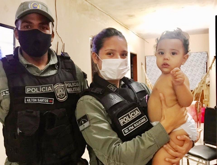 No final da noite deste sábado (17), os Policiais Militares Ailton Santos e Raiane da Operação Forte do 4ºBPM, realizavam patrulhamento no bairro do Salgado quando se depararam com uma mãe em desespero que trazia nos braços sua filha que aparentemente estava engasgada, pois apresentava a face roxa e não respirava, ao tempo em que pedia que os PMs salvassem a vida de sua filha.