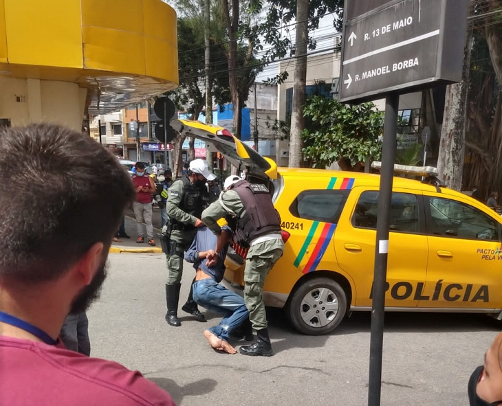 Ele foi entregue a Polícia Militar, levado para delegacia e autuado em flagrante.