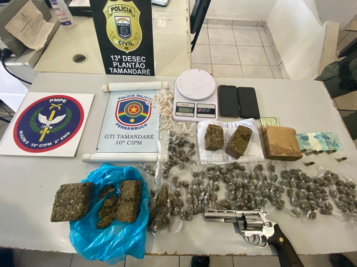 JOVEM É PRESO COM REVÓLVER E GRANDE QUANTIDADE DE DROGAS EM TAMANDARÉ