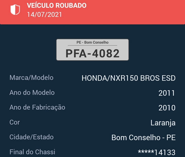 As vítimas foram dois homens, eles trafegavam em uma motocicleta Honda Bros, cor laranja, placa PFA-4082, quando foram interceptados por dois elementos que estavam em outra moto, o garupa estava armado com um revólver e obrigou o condutor a parar após apontar a arma para sua cabeça.
