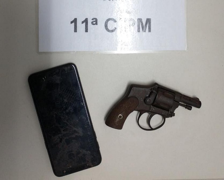 Ele portava um revólver, apontou pra cabeça de uma mulher e mandou que ela descesse do veículo, a vítima era uma cabo da Polícia Militar que estava armada com sua pistola e atirou no marginal.