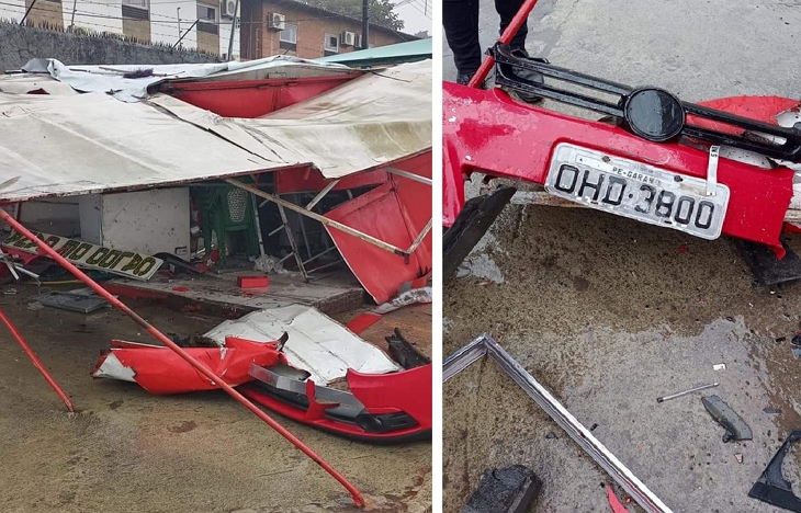 Partes do veículo que causou a batida na barraca ficou no local
