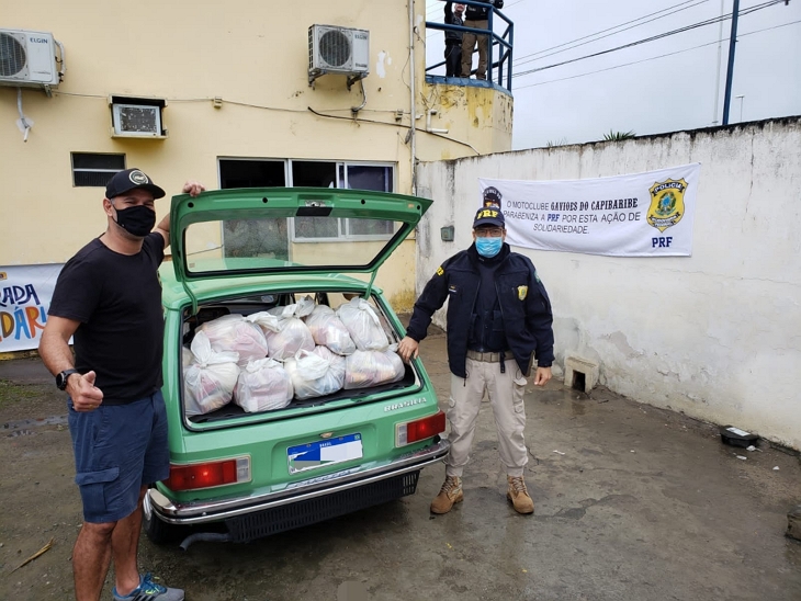 Durante a concentração do passeio, os participantes realizaram a entrega de centenas de quilos de alimentos não-perecíveis. Os donativos serão destinados a instituições sociais cadastradas no Programa Pátria Voluntária, do Ministério da Cidadania.