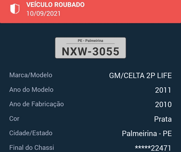 O motorista informou a polícia que os assaltantes estavam armados, obrigaram ele a parar e fugiram levando o Celta, cor prata, placa NXW-3055.