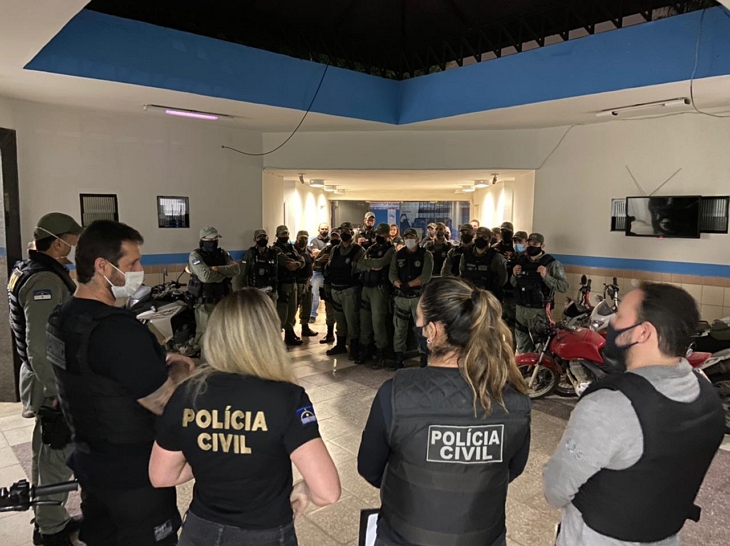 Na execução, estão sendo empregados 30 (trinta) Policiais Civis, entre Delegados, Agentes e Escrivães, e 20 (vinte) Policiais Militares.