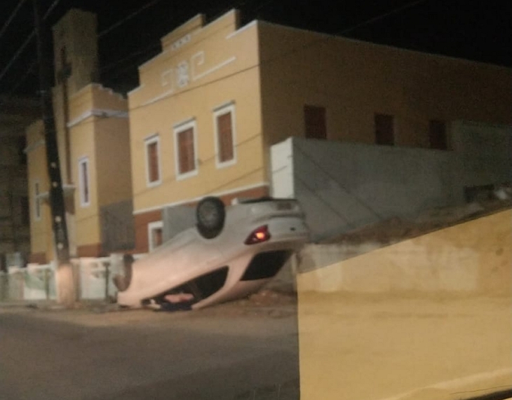 MOTORISTA EMBRIAGADO CAPOTA CARRO A POUCOS METROS DA DELEGACIA SECCIONAL, EM GARANHUNS