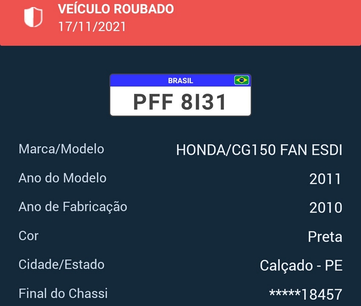 Além da moto Honda CG-150, cor preta, placa PFF-8I31, levaram um aparelho celular.