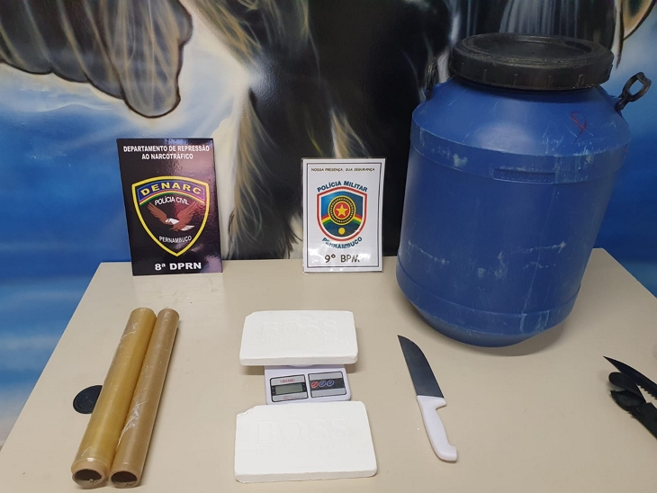 O homem abriu o imóvel e em seu interior foi encontrada a cocaína, uma faca, um tambor e uma balança de precisão.