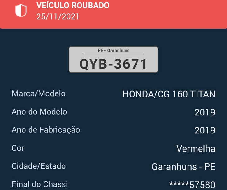 O trabalhador estava fazendo uma entrega na casa de um cliente, quando foi abordado por dois elementos armados, eles anunciaram que era um assalto e fugiram levando a moto Honda CG-160, cor vermelha, placa QYB-3671.