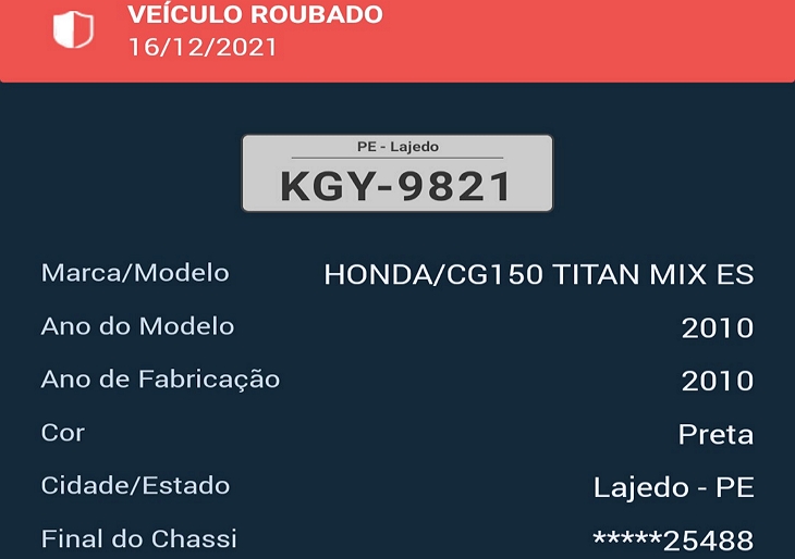 Quem tiver informações do paradeiro da moto e identidade dos criminosos, deve imediatamente denunciar a polícia.
