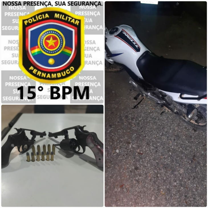 Equipes da Polícia Militar apreenderam dois revólveres e uma motocicleta, como também conseguiram prender um suspeito, após o roubo de uma motocicleta no Sítio Cavalo Morto, em Belo Jardim, no fim da tarde de domingo, 5.