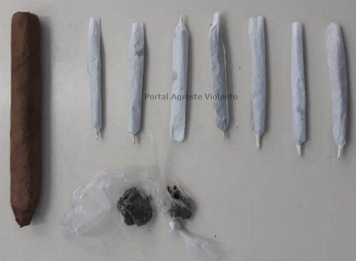 Eles estavam em uma motocicleta e ao serem parados em uma blitz, estavam portando sete cigarros de maconha, duas poções da mesma droga e um charuto.