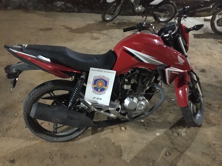 Na tarde desta quarta-feira (8), Policiais Militares do 9º BPM, lotados na cidade de Caetés, no Agreste, receberam informações da localização de uma motocicleta roubada, além de produtos de roubo e armas de fogo naquela cidade.