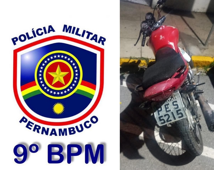 A Polícia Militar apreendeu uma motocicleta Fan, 125, vermelha, com placa PES-5215, durante uma abordagem no início da noite de domingo, 30, no bairro Aluísio Pinto, em Garanhuns. O veículo estava na posse de um adolescente de idade não informada.
