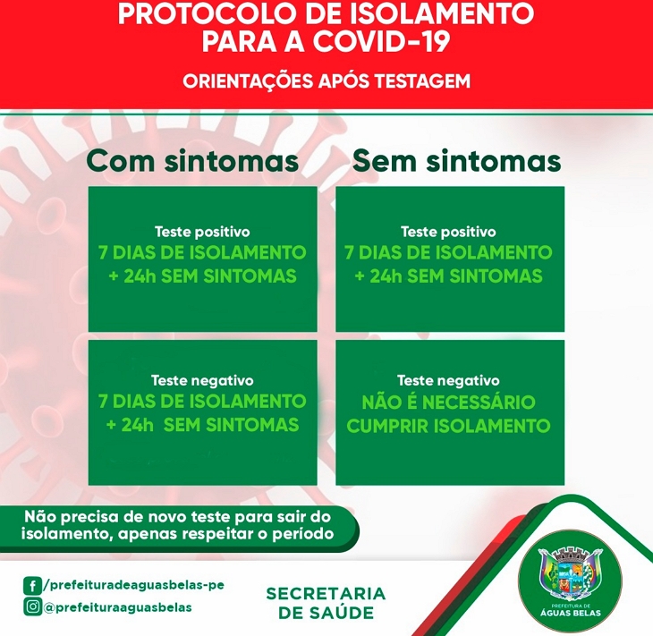 ÁGUAS BELAS: VEJA AS REGRAS DO NOVO PROTOCOLO DE ISOLAMENTO PARA COVID-19