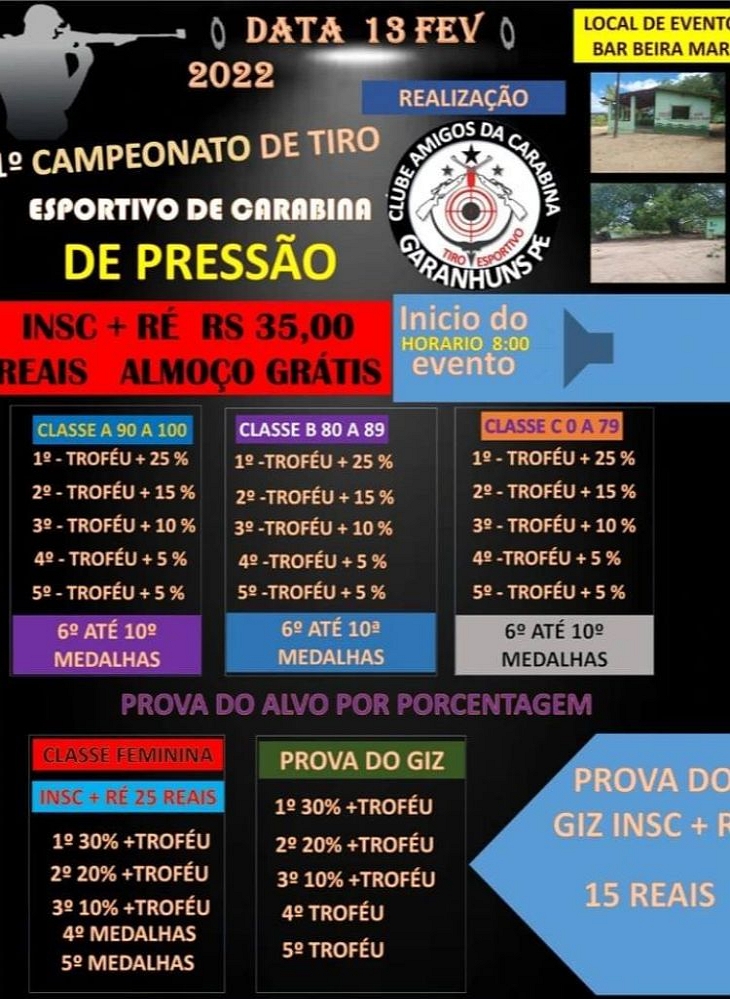 Se você tem sua carabina de pressão 4,5, 5,5 mm, compareça e participe.