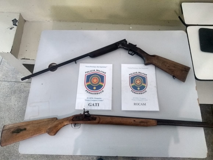A Polícia Militar apreendeu duas espingardas na tarde desta sexta-feira (11), no município de Pesqueira, no Agreste.