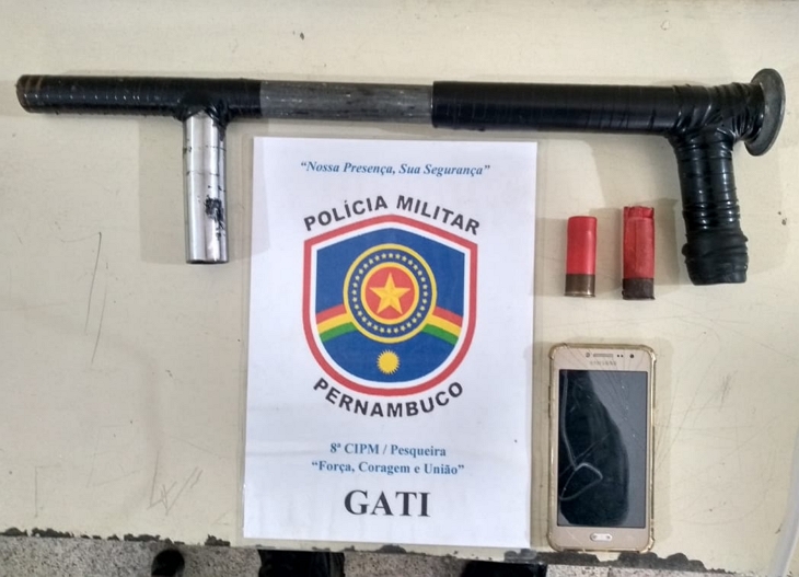 Já no bairro Centenário, um elemento conseguiu fugir da abordagem policial, na casa dele a PM encontrou uma espingarda calibre 12 de fabricação artesanal e dois cartuchos intactos.