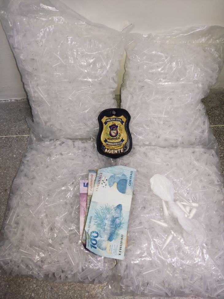 De acordo com a polícia, o suspeito vinha sendo monitorado nos últimos dias pela Polícia Civil quando foi flagrado na Rua Esperança, centro de Águas Belas, traficando drogas mais uma vez. Durante buscas na casa onde ele se encontrava foram encontrados 08 pinos de cocaína, 01 sachê, 04 mil pinos vazios para acondicionar droga, 02 aparelhos celulares, R$ 121,00 em espécie, 02 câmeras de monitoramento, além de outros objetos.