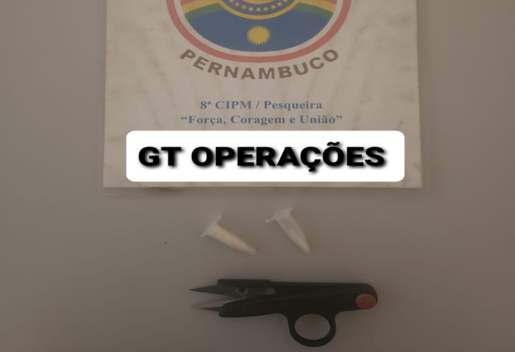 Policiais militares da 8ª CIPM apreenderam dois pinos de cocaína que estavam na posse de um elemento abordado nesta terça-feira, 1, em Pesqueira.