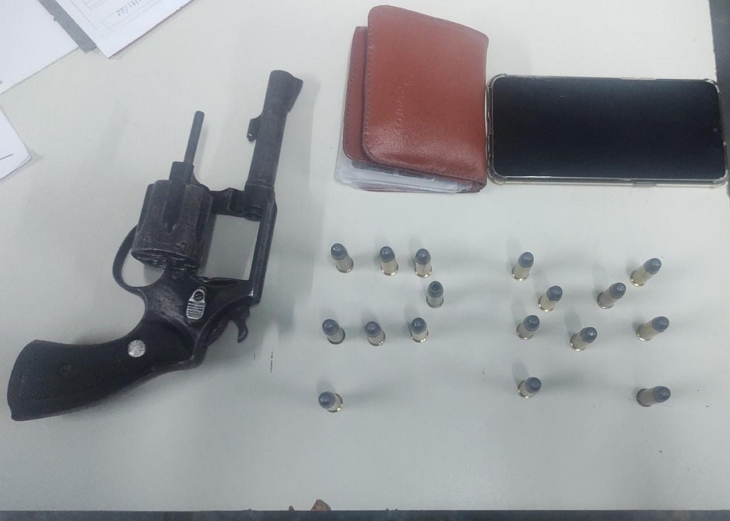A Polícia Militar estava realizando rondas na área rural e recebeu informações que foram repassadas pela vítima do assalto, após alguns minutos o criminoso foi avistado, abordado e com o mesmo encontrado um revólver calibre 38 e diversas munições.