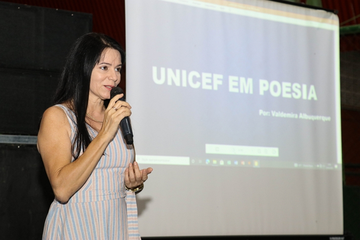 Na ocasião, a professora, escritora e poetisa, Valdemira Albuquerque resumiu em uma poesia a história do Unicef e os objetivos do Selo Unicef, composto por três pilares: o Impacto social, a gestão de política pública e a participação social.
