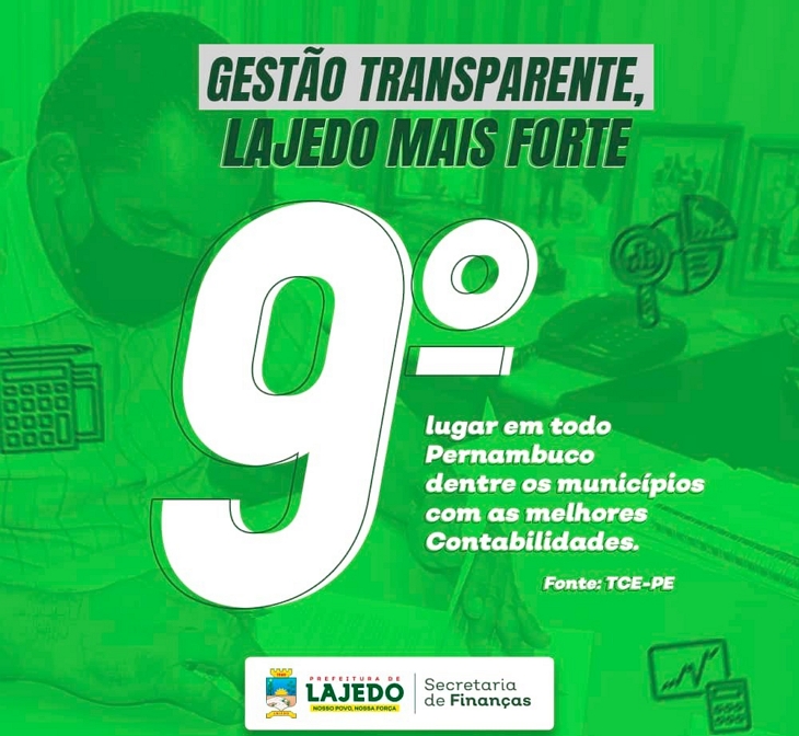 DE 184 MUNICÍPIOS, LAJEDO FICA EM 9º LUGAR COMO MELHOR CONTABILIDADE