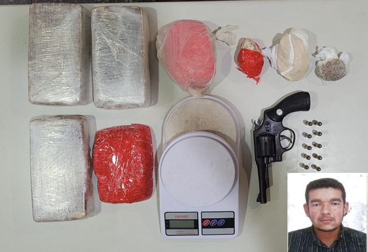 Com José Leandro Ferreira, de 30 anos, foi apreendido mais de 4 quilos de crack, uma balança de precisão e um revólver calibre 38 com munições.