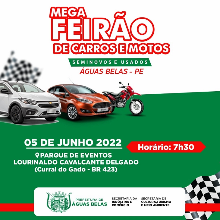Se você está pensando em comprar ou vender seu veículo, o Mega Feirão de Carros e Motos de Águas Belas é o lugar certo. A 2ª edição do evento acontece neste domingo, dia 5 de junho, no Parque de Eventos Lourinaldo C. Delgado (Curral do Gado), a partir das 7h30.
