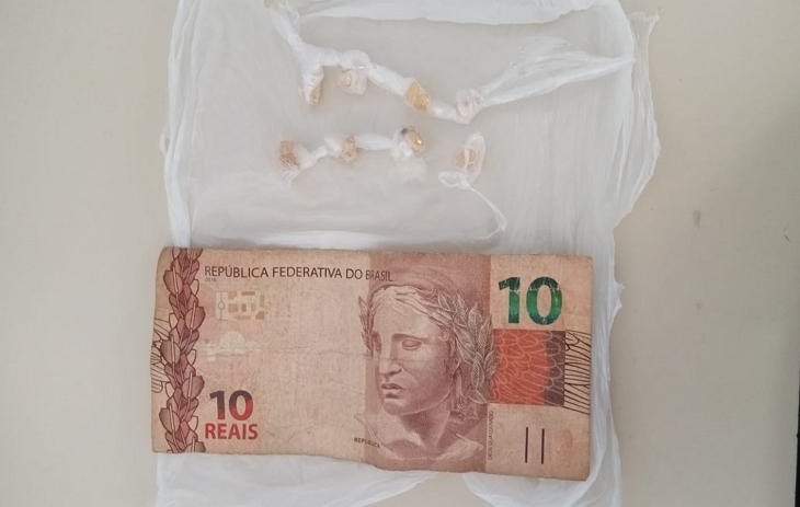 Com ele foram encontradas 8 pedras de crack, o elemento foi levado para Delegacia de Plantão, registrado Boletim de Ocorrência e liberado.