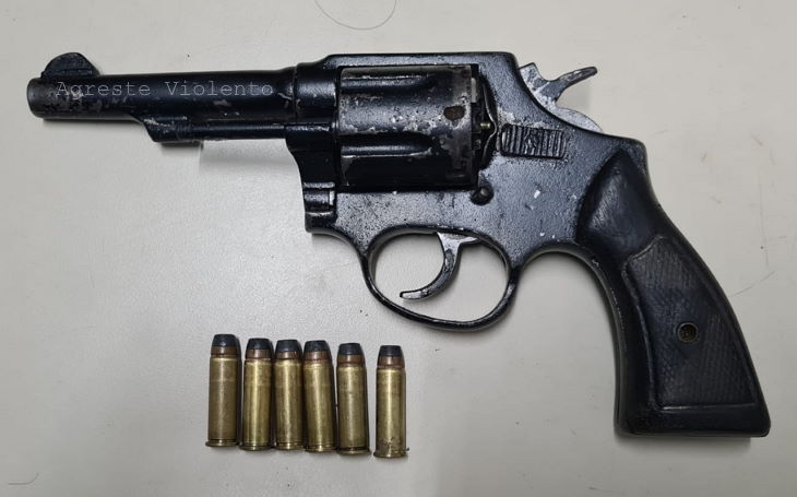 A Polícia Militar realizava rondas e abordou o indivíduo que estava em frente a casa que mora, na cintura dele foi encontrado um revólver calibre 38, ele foi levado para delegacia de Polícia Civil e autuado em flagrante por porte ilegal de arma de fogo.
