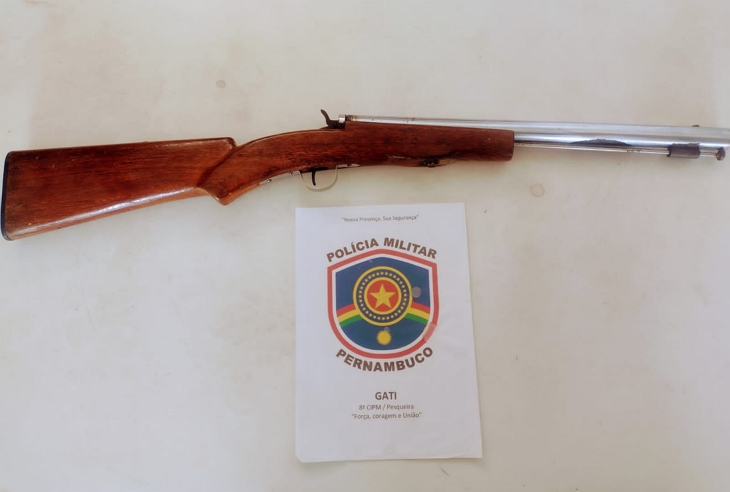 Uma espingarda foi apreendida pela Polícia Militar na tarde desta segunda-feira (18), no Sítio Tambores, na zona rural do município de Pesqueira, no Agreste de Pernambuco.