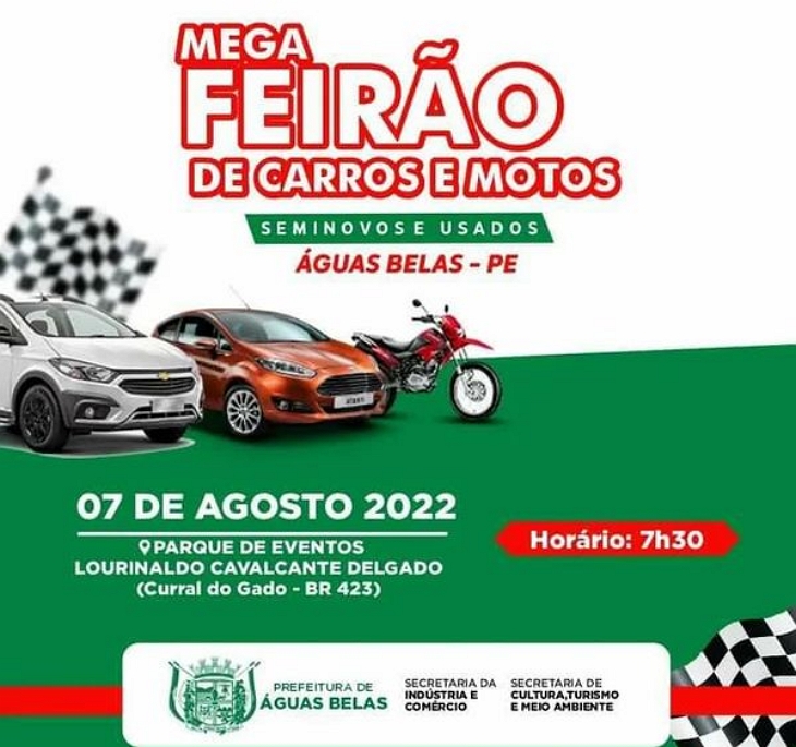 3º MEGA FEIRÃO DE CARROS E MOTOS DE ÁGUAS BELAS ACONTECE NESTE DOMINGO (7)