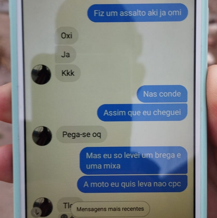 No celular de um dos infratores foram encontradas mensagens onde ele conta a um comparsa que havia praticado o assalto.