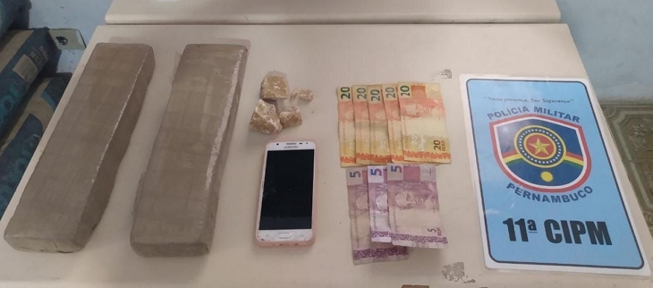 Policiais do GATI da 11ª CIPM e outras guarnições, apreenderam cerca de 2kg de maconha, pedras de crack, um aparelho celular e R$ 115,00. A droga estava na posse de Aline Ramos. Ela foi flagrada num transporte alternativo que seguia em direção a Canhotinho/PE na manhã deste sábado (1º).