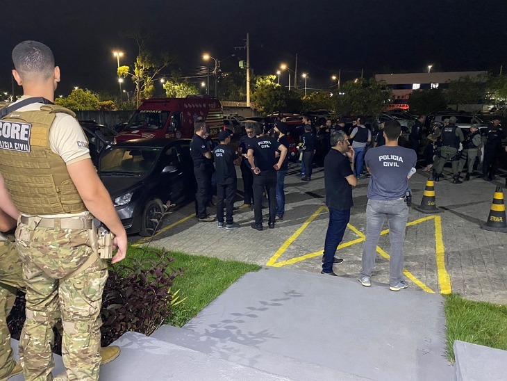 Na execução, estão sendo empregados 120 Policiais Civis, entre Delegados, Agentes e Escrivães, 30 Policiais Militares – PMPE e bombeiros do 2º Grupamento do Corpo de Bombeiro Militar – CBMPE.