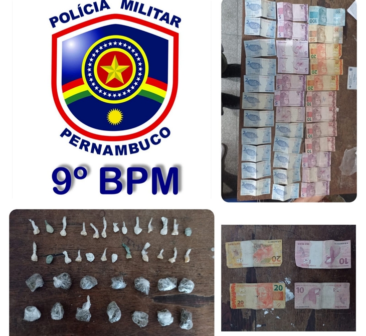 A dupla trafegava em uma motocicleta, quando foram abordados pela Polícia Militar na Rua Laércio Silvestre, com o garupa foram encontradas 25 pedras de crack, 14 big-bigs de maconha e uma quantia em dinheiro, com o piloto foi encontrada uma quantia em dinheiro.