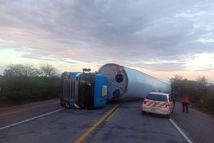 De acordo com informações preliminares da Polícia Rodoviária Federal (PRF), o tubo de pá eólica caiu sobre duas caminhonetes que estavam na rodovia. No entanto, ninguém ficou ferido na segunda caminhonete.